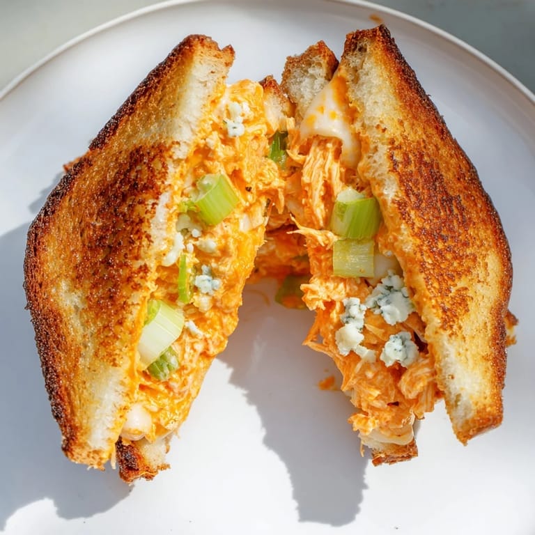 Pin This I discovered this sandwich by accident on a Tuesday night when I had leftover buffalo chicken and a craving for something warm and indulgent. My roommate was making grilled cheese next to me, and I watched the butter sizzle in the pan before grabbing a handful of blue cheese from the fridge—a leap of faith that turned into something I've made at least once a week since. The heat, the creaminess, the slight tang of blue cheese cutting through spicy sauce: it clicked immediately.