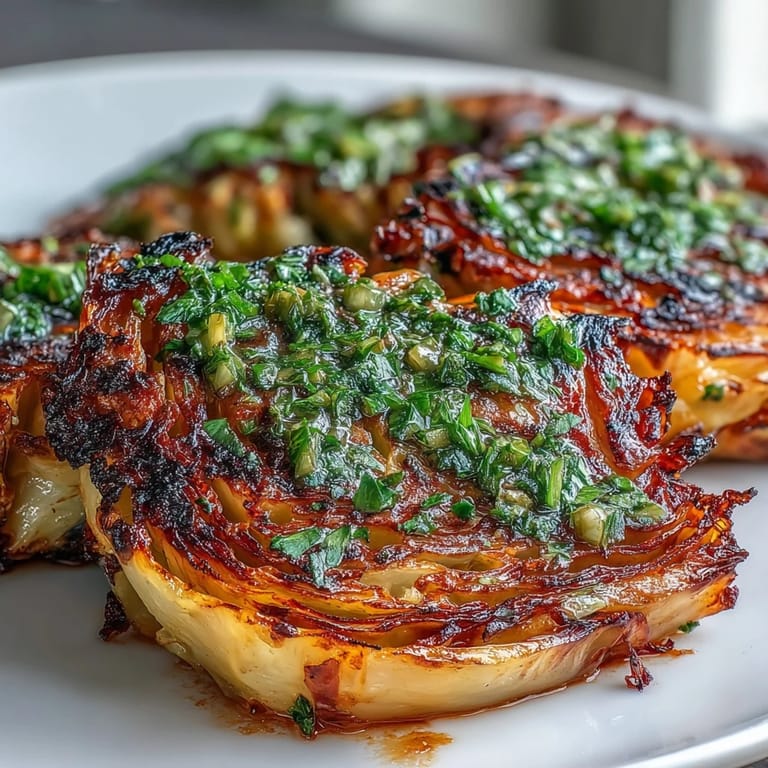 Pin This I was staring at a stubborn head of cabbage one evening, determined not to let it turn into slaw again. Something about slicing it thick, like a proper steak, felt daring. The oven worked its magic, edges crisping and caramelizing until they tasted almost meaty. Then I remembered a jar of chimichurri in the fridge and thought, what if I made it spicy? That night, cabbage became the star of dinner instead of the sidekick.