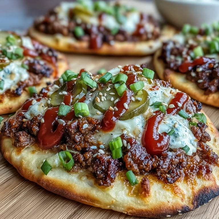 Pin This My roommate texted me a photo of a cheeseburger pizza from some trendy spot downtown, and I stared at it thinking, why am I paying someone else to combine two things I can make at home? That evening, I had mini naan breads sitting in my fridge and ground beef thawed on the counter, so I improvised. The result was nothing short of magic—crispy garlic naan acting as the vessel, seasoned beef settling into every crevice, melted cheese sauce binding it all together, and tangy pickles cutting through the richness like they were meant to be there all along.