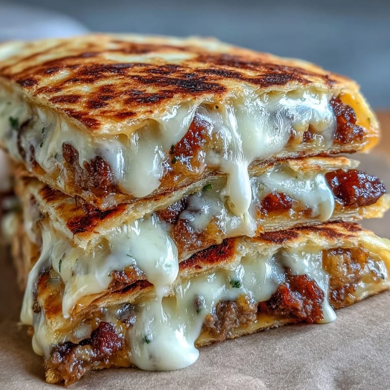 Pin This My cousin swore nobody could improve a quesadilla until I flipped one loaded with smashed burger patties onto his plate. The crunch was so loud we both laughed, and when he bit through the crispy tortilla into gooey cheddar and caramelized beef, he just shook his head. I'd spent weeks trying to merge two late-night cravings into one handheld miracle, and watching his face told me I'd nailed it. This recipe is what happens when you stop choosing between comfort foods and start stacking them.