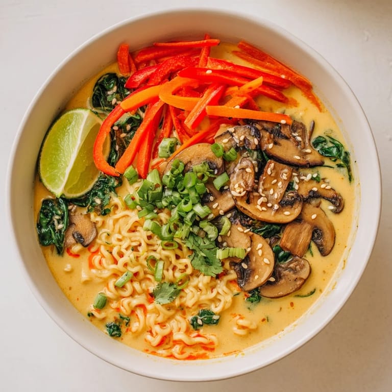 Pin This A rich, flavorful noodle soup featuring creamy coconut milk, aromatic curry spices, and chewy ramen noodles—deliciously satisfying and budget-friendly.