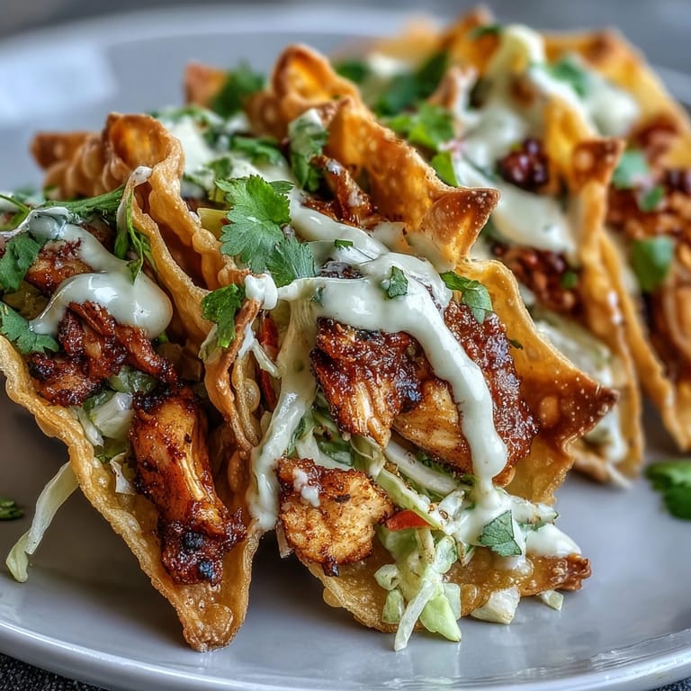 Pin This My neighbor knocked on my door one Saturday morning holding a bag of wonton wrappers and asking if I knew what to do with them. I didn't, but we decided to figure it out together over coffee. What started as an experiment turned into these ridiculously crispy, flavor-packed tacos that neither of us could stop eating. We went through three batches that day, tweaking the slaw and drizzle until we got it just right.