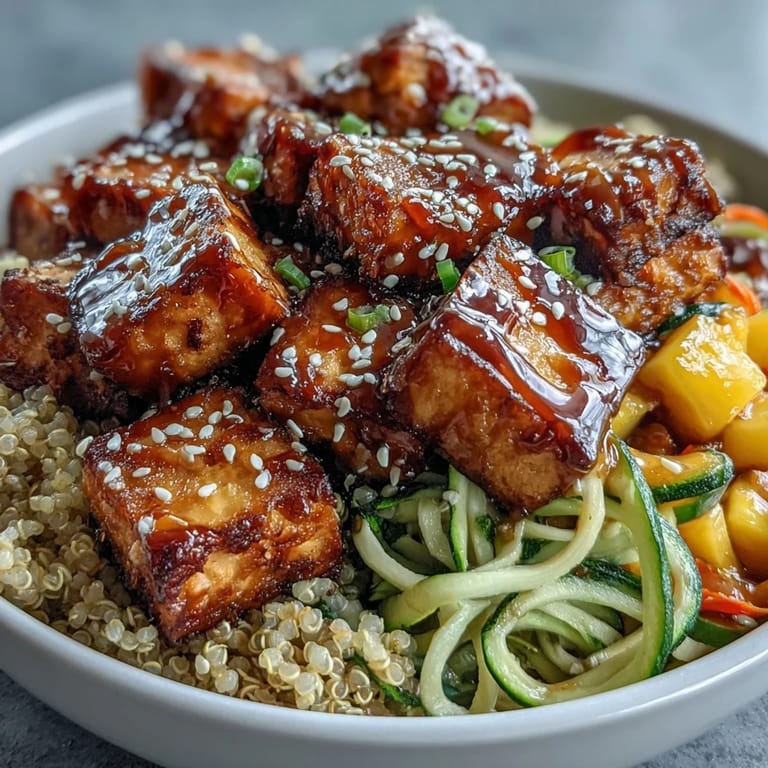 Pin This This Easy Teriyaki Quinoa Bowl is a vibrant and nourishing dish that perfectly balances savory, sweet, and fresh flavors. Featuring crispy baked tofu or chicken paired with spiralized vegetables and a glossy gluten-free teriyaki sauce, it offers a wholesome meal that is both satisfying and incredibly simple to prepare.