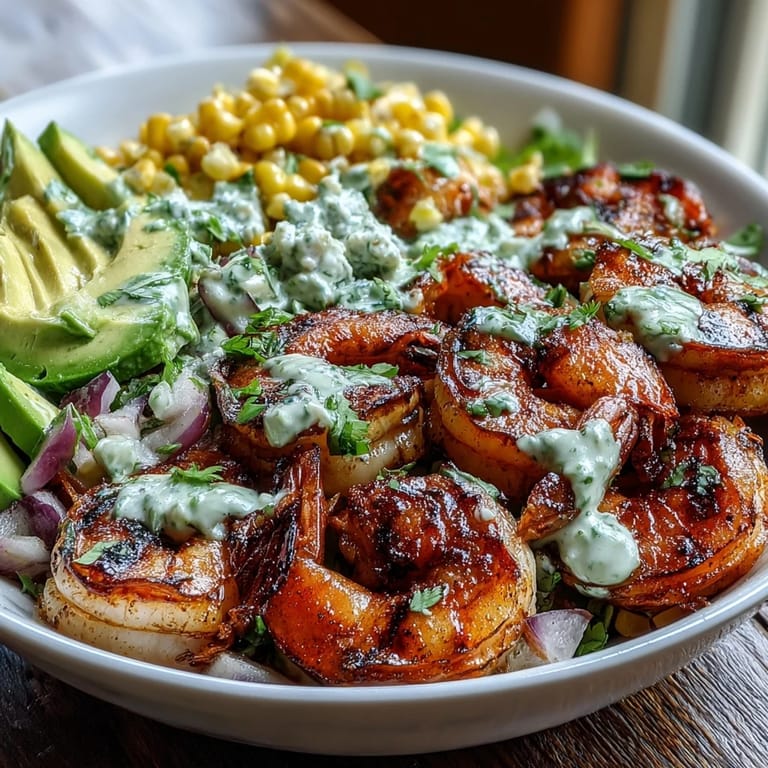 - Start with your base of rice, quinoa, or greens, then pile on the corn salsa, arrange those gorgeous grilled shrimp on top, and add the avocado. Finish with a generous drizzle of that creamy garlic sauce all over everything.