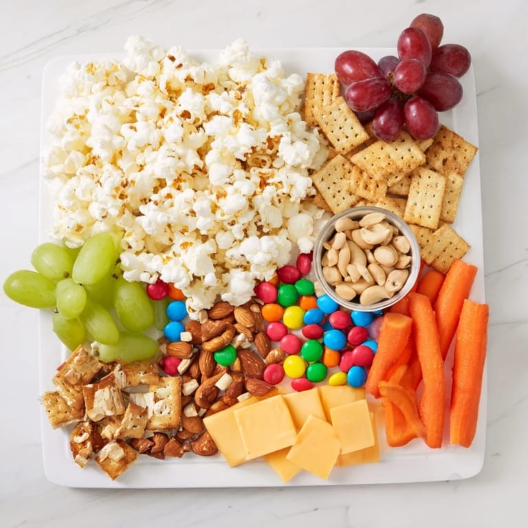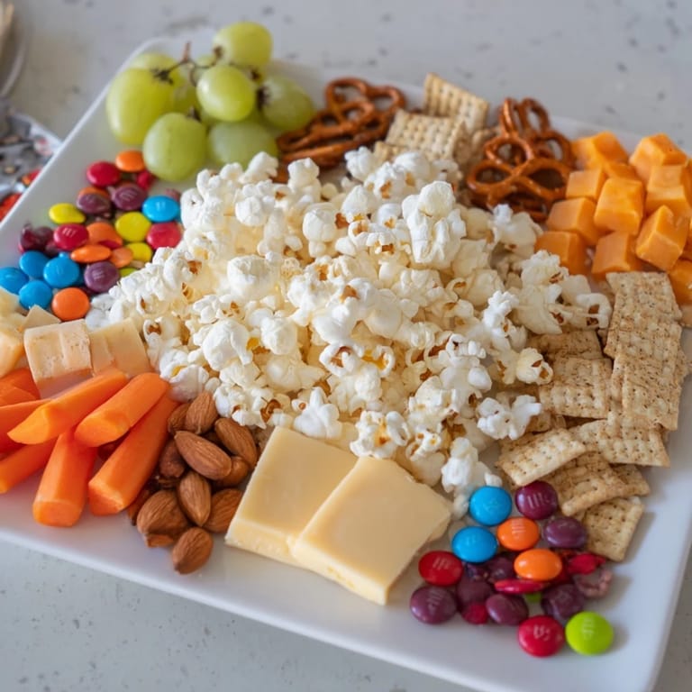 - Freshly popped popcorn or colored popcorn (6 cups): This is your foundation and the visual centerpiece—freshly popped tastes infinitely better than pre-packaged, and if you use colored popcorn, it becomes the eye-catching heart of your board. I learned to pop it just before arranging because stale popcorn loses its charm fast.