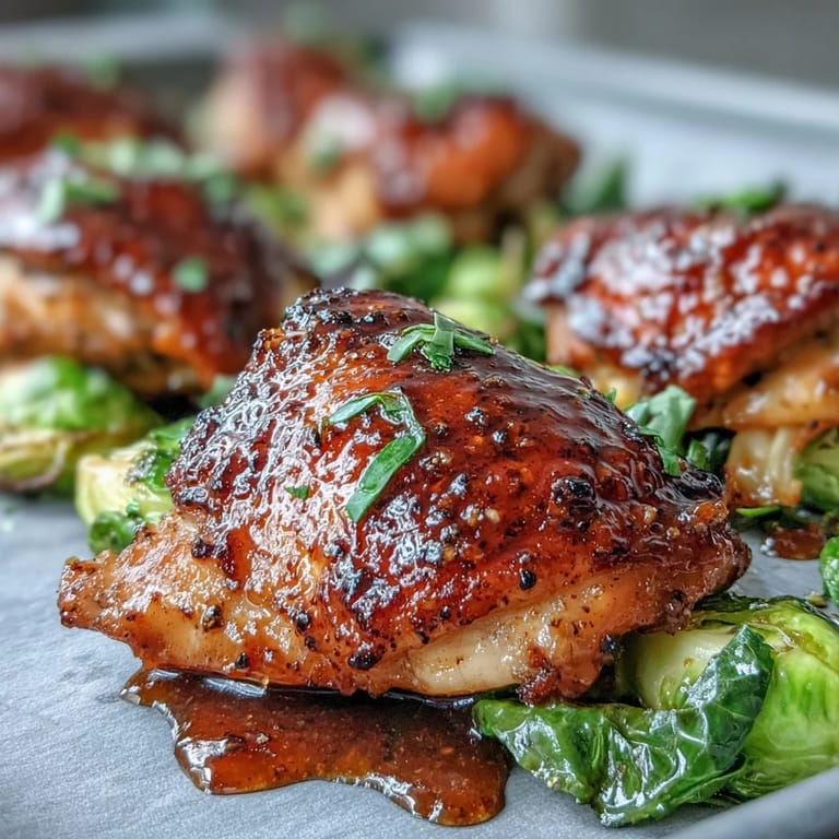 Pin This There's something magical about opening the oven to find an entire dinner golden and bubbling on one pan, steam rising with the smell of honey and mustard mingling with caramelized Brussels sprouts. My kitchen got quiet one weeknight when I realized I could stop juggling three pans and just commit to this single sheet. The chicken thighs stay impossibly juicy while everything else crisps up exactly the way you want it, and honestly, the cleanup alone makes this a recipe worth remembering.