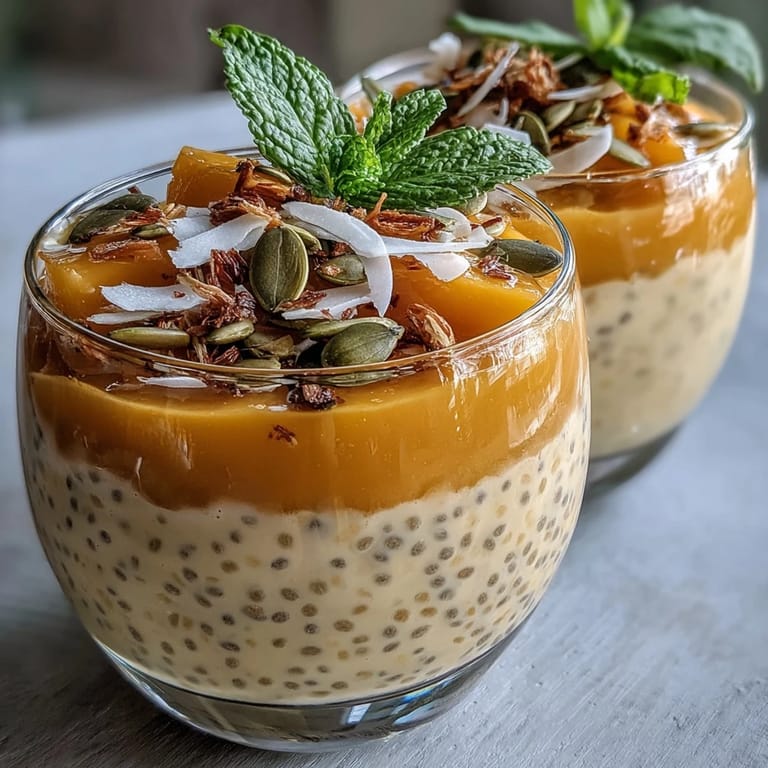Pin This Last summer, I was standing in my kitchen at 6 AM, staring blankly at the fridge, wondering why breakfast always felt like a chore. Then I remembered a friend mentioning she'd started making these mango coconut chia puddings the night before, and suddenly mornings became something to look forward to. The idea of spooning into something cold, creamy, and naturally sweet without any fuss felt almost luxurious for a weekday. That first bite—the tiny chia seeds popping against my tongue, the bright mango cutting through the richness—changed how I thought about breakfast entirely.