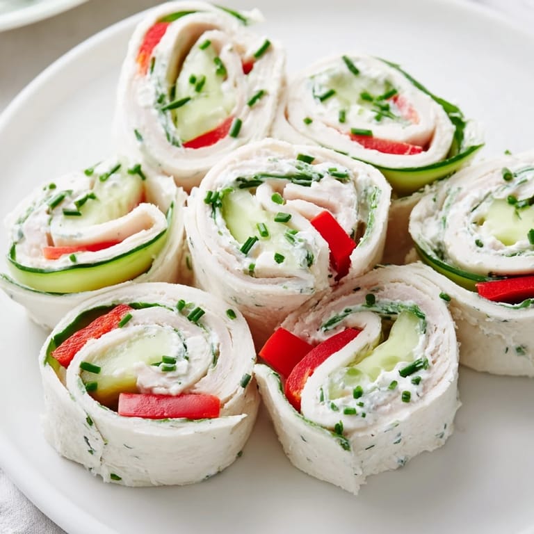 Pin This Tender turkey slices rolled and stacked for a simple, protein-rich snack or appetizer. Perfect for quick lunches or party platters.